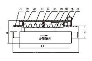 JWY型无约束型补偿器内的波纹管采用单层、双层或多层U型波,波纹管和导流套材料为 1Cr18Ni9Ti 等奥氏体不锈钢。无约束型补偿器在固定支架间距的确定和固定支座推力计算等和普通的轴向型补偿器完全相同。