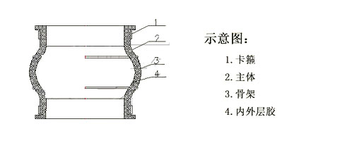 2 | 内、外衬 Inner & Outer Rubber | 天然橡胶(NR) 氯丁橡胶(CR)丁基橡胶(IIR) 丁腈橡胶(NBR)氟橡胶(FKM)三元乙丙橡胶(EPDM)聚四氟乙烯(PTFE) |
